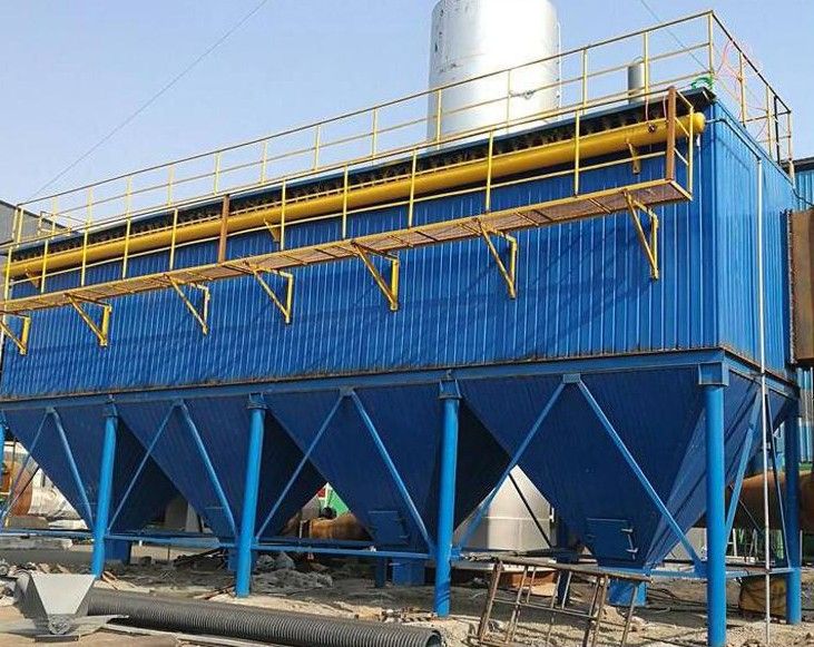 GA型大氣清灰袋式除塵器由進出口煙道、除塵室、凈氣室、清灰系統(tǒng)及灰斗等組成。該離線脈沖除塵器工作時廢氣溫度降為130℃,瞬間可達180℃的含塵氣體由布袋除塵器中下部的進口煙道分配后進入各室的灰斗,煙氣由于折流和速度降低等原因使得比較粗、比較重的粉塵顆粒得以沉降,達到預(yù)分離的目的。細粉塵隨氣流轉(zhuǎn)折向上進入離線脈沖除塵器的除塵室,由于離線脈沖除塵器濾袋的過濾作用,粉塵被阻留在濾袋的外表面,過濾后凈氣體由離線脈沖除塵器的濾袋內(nèi)部進入各單元的凈氣室,并匯合于出口煙道"經(jīng)引風(fēng)機后通過煙囪排入大氣。